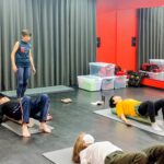 レッスンエリアは参加者全員がミラーを見ながらフォームの確認が行える様に、大型ミラーを設置しました。広いスペースがありながらレッスンの定員を8名にしているのは、参加者一人一人にしっかりと指導が行き届く環境にするためです。